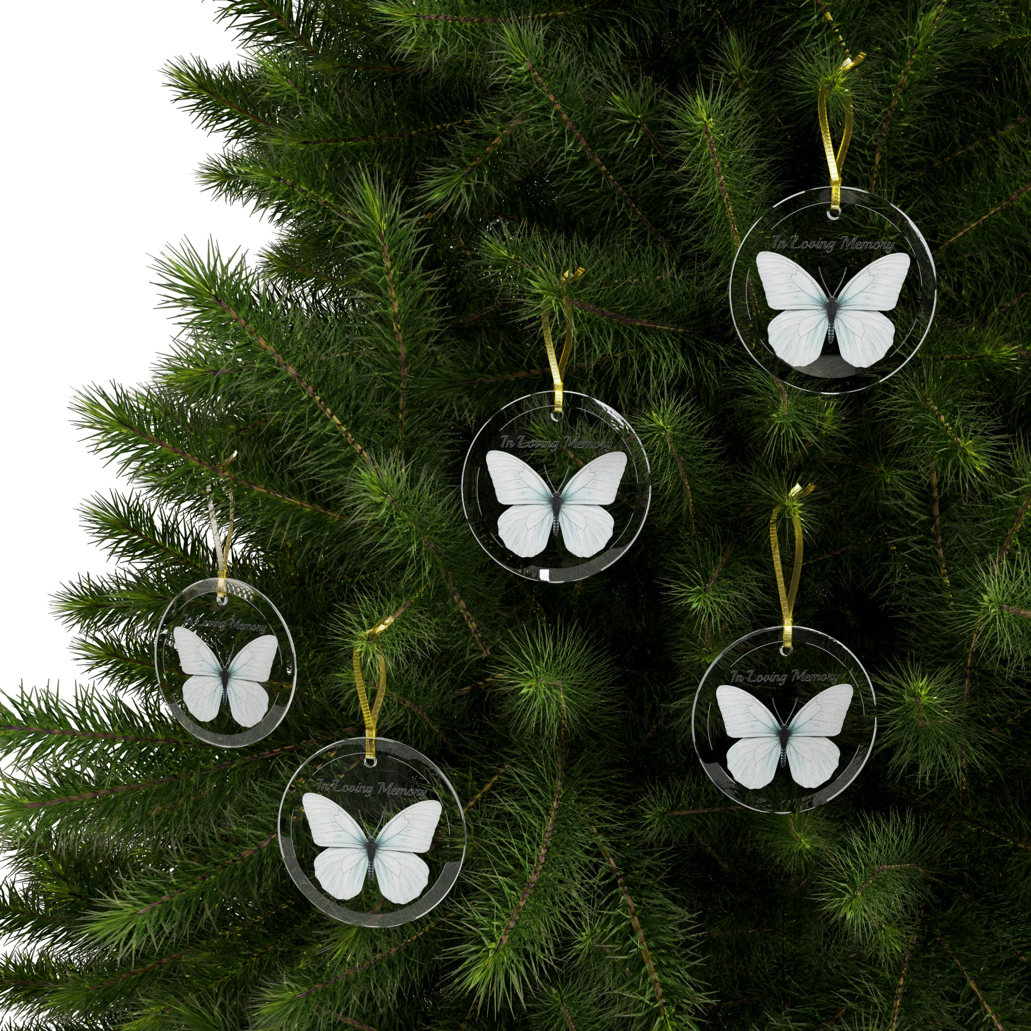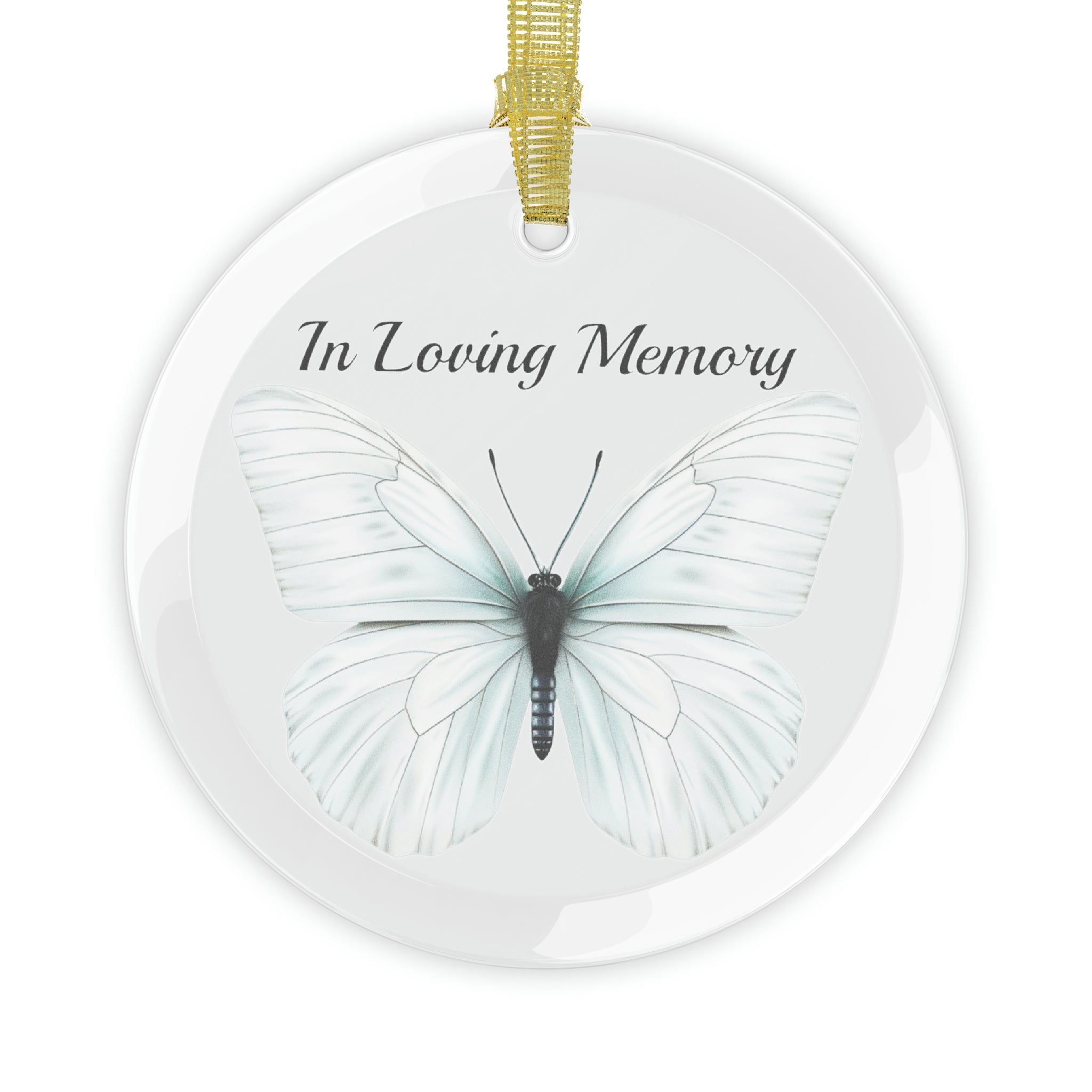 Cherished Memorial Ornament with White Butterfly Design - In Loving Memory